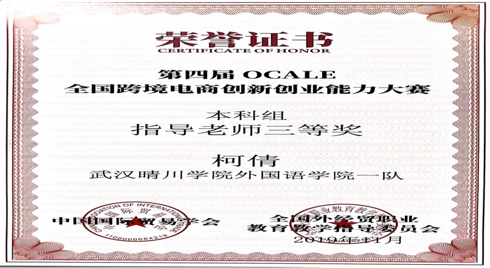 (3)学生小组参加第四届OCALE全国跨境电商创新创业能力大赛获得本科组三等奖