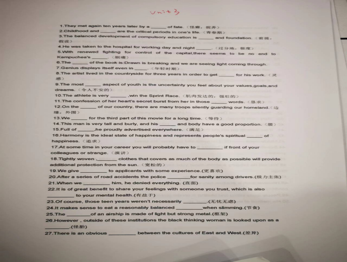 每周默写一个单元,默写“中-英”,每次默写15分钟 |
