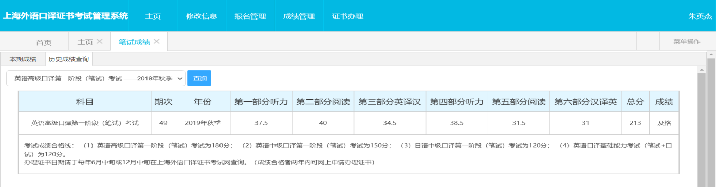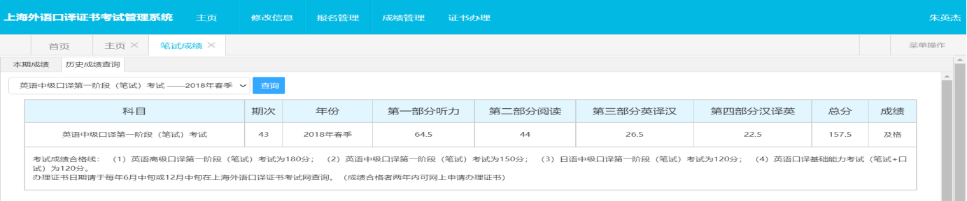 (5)在我的鼓励和辅导下,班上有十几名学生通过了上外的中级及高级翻译考试。此考试从他们大一开始我进行了宣传并组织有意向同学建立学习小组,qq群,互相监督打卡,跟他们进行交流。以下是部分学生的考试成绩: