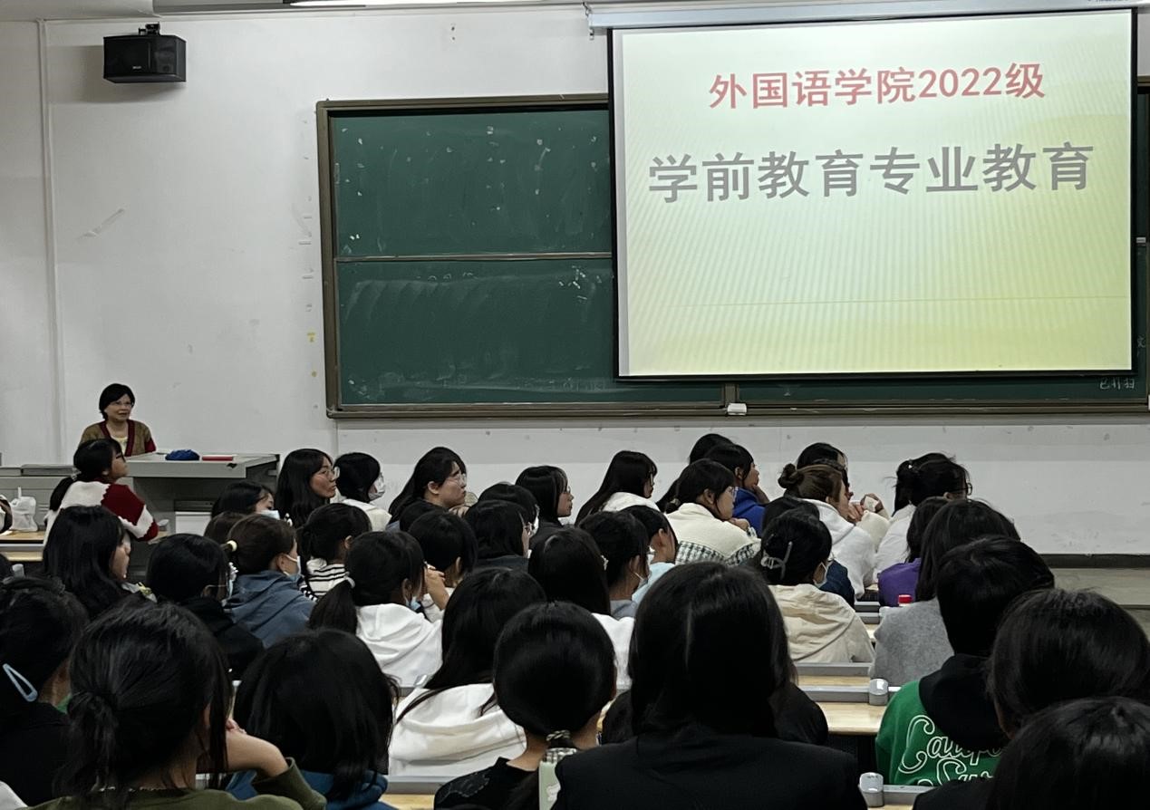 学前教育副主任满丛英、副主任于黎分别对本专业教学、教改、实习实践做了详细介绍。重点围绕熟悉校园环境与校纪校规、了解培养方案与专业课程、引导新生明晰自身发展方向,做好大学生涯规划等方面,开展了全面的教育活动,并与学生展开有问必答活动,现场气氛积极活跃。