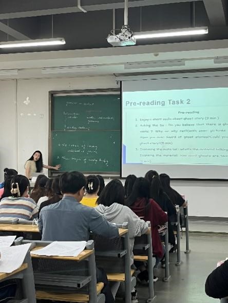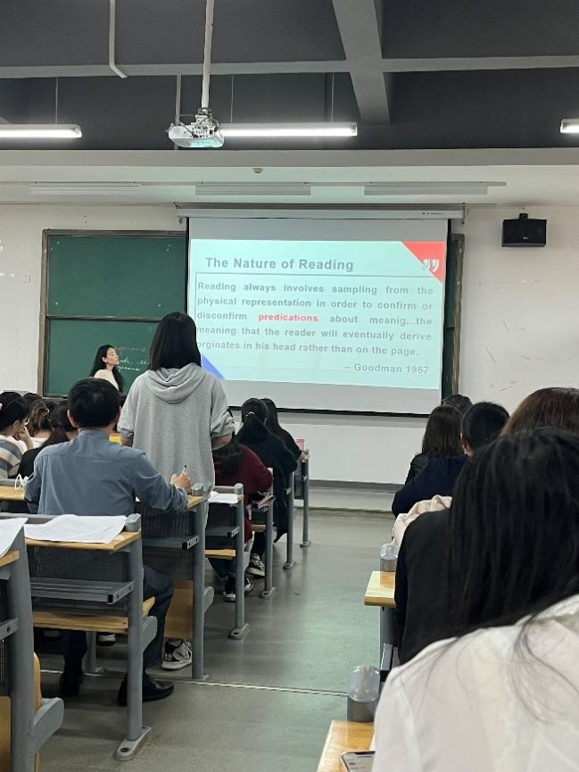 本次示范课由骨干教师路璐老师进行示范课展示。活动伊始,路璐老师带着英语2001班的学生向大家展示了英语教学法的魅力。在课堂导入环节,路璐老师首先让大家观看视频,引出教学内容,大大提高了学生的学习兴趣,指导学生明确教学法的要求。在学习策略的同时,路璐老师还不忘引导学生关注文本语言的表达,内容的理解。最后,路璐老师回扣阅读的本质,引导学生对刚刚使用的阅读方法进行梳理。路璐老师在课堂中呈现了思维的深化,学习的推进,把语言的构建与应用和思维的开展与提升进行了有机的交融。