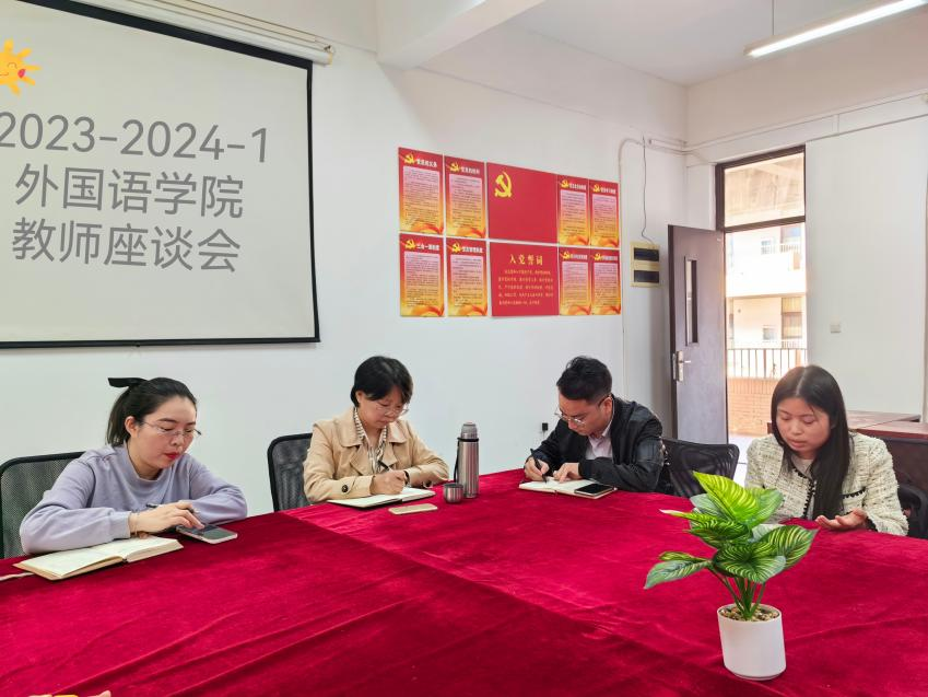 为了加强与教师之间的交流,促进学院教学工作的高质量发展,OK138太阳集团于11月8日下午在综二413举行了2023-2024学年第一学期教师代表座谈会。座谈会由OK138太阳集团副院长张秀芳主持,院长助理易静、办公室主任蔡林出席了本次座谈会,OK138太阳集团四个系部教师代表参加。