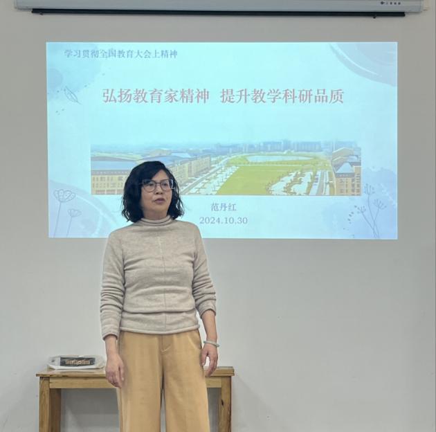 10月30日,学前教育系在综二103举行了教师系列讲座的首场活动,系主任范丹红教授以《弘扬教育家精神,提升教学科研品质》为主题率先开讲。范教授围绕科研意识培养、政策文件解读和科研选题规划等内容,结合自身的学术实践经验,为学前教育系全体教师带来了一场内容丰富、指导性强的讲座。
