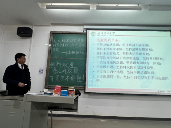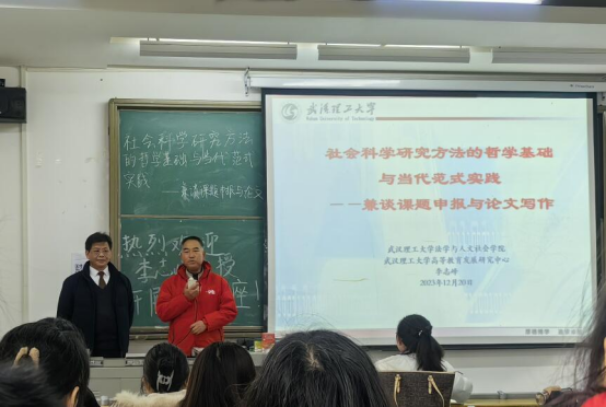 2023年12月20日下午,在学校科研处的支持下,我院邀请到武汉理工大学法学与人文社会学院副院长、高等教育发展研究中心主任李志峰教授,为全院青年教师开展了一场题为“社会科学研究方法的哲学基础与当代范式实践——兼谈课题申报与论文写作”的学术讲座。我院朱宾忠院长代表全体教师对李志峰教授的到来表达了热烈的欢迎。