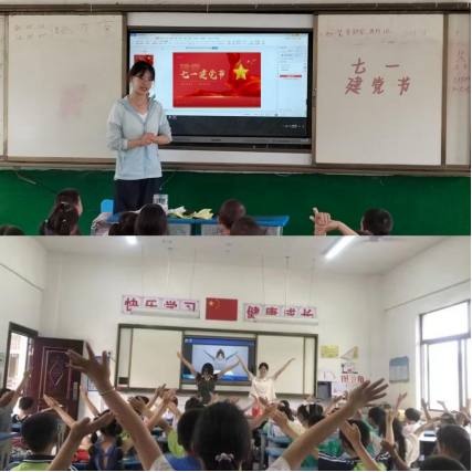 为了更好地继承和发扬党的优良传统和优秀作风,培养儿童的爱国情怀,在建党102周年之际,志愿服务队开展了“情系七一,童心向党”的系列活动,走进课堂,讲述了党的历史、红军长征的故事、抗日的故事,教小学生们做《童心向党》、《少年中国说》的手势操,通过红色宣讲和音乐感染的方式,让小学生们从小接受革命传统熏陶,让红色基因浸润童心。