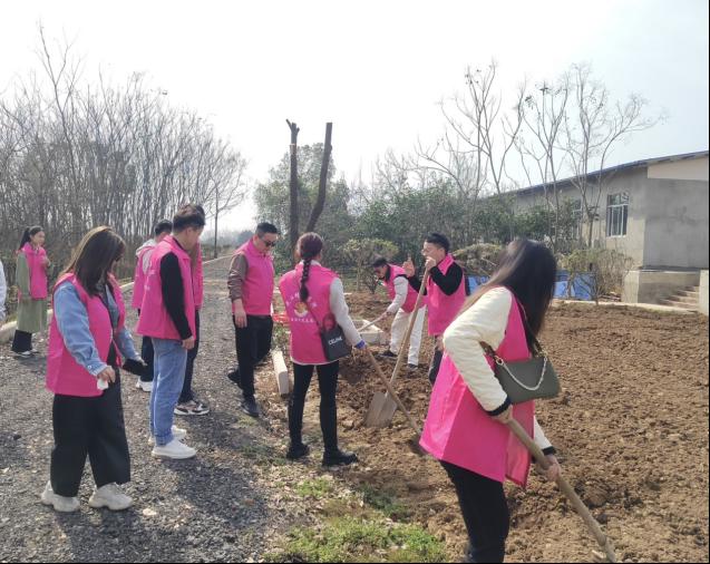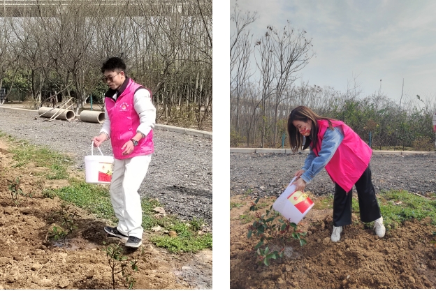 随后大家开始分组分工、相互配合,挥锹铲土、扶苗填坑、培土浇水,干劲十足,大家肩并肩、心连心,用实际行动诠释了对自然的尊重和未来的期待。多颗幼苗在大家的共同努力下稳稳地扎根土壤,预示着这片土地将迎来更加生机勃勃的未来。新栽植的小树迎风而立、生机盎然,为美丽乡村再添新绿。