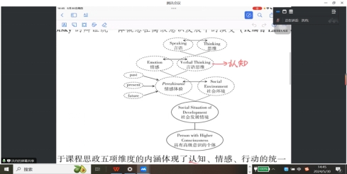 欧阳明珠同学主要侧重于有关课程思政有效性的论文,阐明了以层次分析法为支撑,通过课程设计、师资队伍、学生认知、发展评估、制度设计五个维度构建课程育人教育质量评价模型以及在提升课程思政有效性时需遵循的基本原则。该同学汇报完毕后,严雪梅老师指出了实践的重要性,要在阅读文献后思考如何将抽象且系统的理论付诸于教学实践。