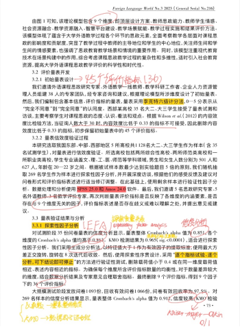洪丹同学则重点阐释了大学外语课程思政教学评价量表的构建,详细讲解了其理论,原理以及操作。在此过程中,她向大家介绍了探索性因子分析以及KMO指数的相关概念以及内在逻辑。此外,洪丹还重点汇报了如何将情感体验运用到思政课程。对于洪丹同学的汇报,严雪梅老师对其进行了总结与点评,并重点强调和阐释了论文中提到的学科前沿的概念、理论和方法,呼吁大家深入学习和探究。
