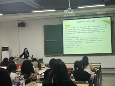 卢秋平教授详细讲解了三种常见的文献引用格式:括号式(含作者、出版日期及页码)、数字式(以数字对应编号列表中的条目)、注释式(在脚注或尾注中完整列出,文中用上标数字或符号指示)。同时,她结合自己的投稿经历,具体阐述了Chicago author-date style、Harvard style和MLA style等引用风格的特点和适用场景。