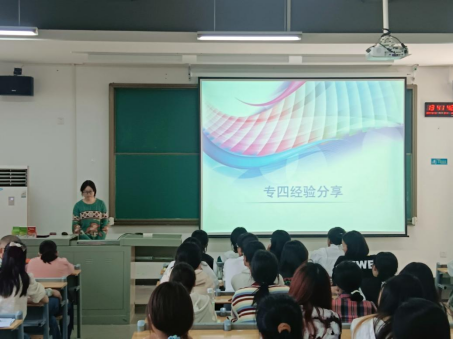随后,会议进入了一个特别的环节——商英优秀学生代表分享大学生活经验。商英2022级优秀学生代表梅文婧同学结合自己的亲身经历,向新生们传授了大学生活的宝贵经验和专四备考的实用技巧。她从备考心态的调整、备考策略的制定,到备考过程中需要注意的点点滴滴,都进行了详细的阐述。她的分享不仅让新生们受益匪浅,也让他们对即将到来的大学生活充满了期待和信心。