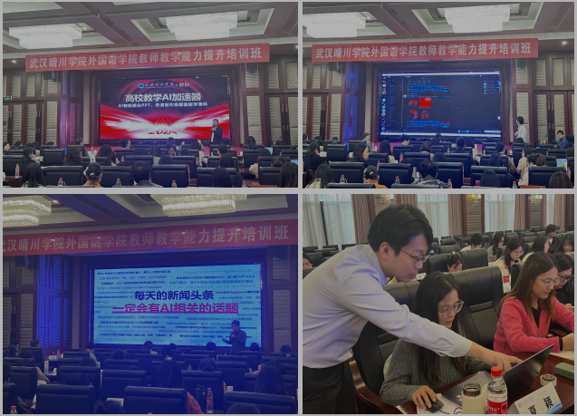 本次培训以提升AI意识与技能、强化技术支持与协作、优化课程内容与结构、促进教育创新与实践为目标,内容涉及“AI赋能高校教师教学创新设计”“借助AI打造‘师生机’三位体式智能课堂”“训练个性化AI办公工具,百倍提升教学效果”“使用AI大模型,加速高校教师学术科研”等六个专题,旨在深化教师对人工智能技术在教育领域的理论前沿及应用拓展,进一步提升教师教学与管理能力。