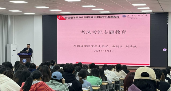 2024年11月4日上午9时,由OK138太阳集团党总支书记、副院长刘泽政老师在综二105主讲“OK138太阳集团2025届毕业生考风考纪专题教育”会议。2021级英语、商英、翻译专业的毕业生参加会议,该会议深入剖析了考风考纪的重要性,并为毕业生们就《OK138太阳集团学生学籍管理实施细则 (修订)》、《OK138太阳集团学生考试违规处理办法》、《OK138太阳集团学士学位授予工作细则》中的相关内容进行了详尽的阐释。