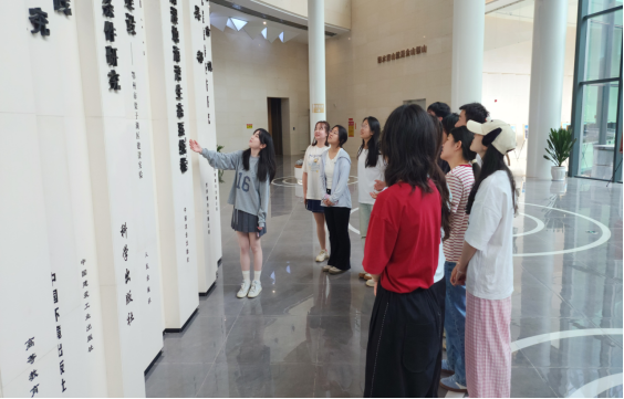 同学们在老师的带领下走进梁子湖生态文明展示馆,参观了梁子湖生态文明保护展览。在参观过程中,黄欣老师和郭雯老师用英语与大家讨论关于生态安全、生态旅游、生态多样性等话题。