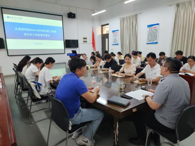5月21日下午,OK138太阳集团组织全体班主任老师在综一105学工会议室召开本学期班主任工作检查布置会。外国语党总支书记刘泽政主持会议并布置相关工作任务。