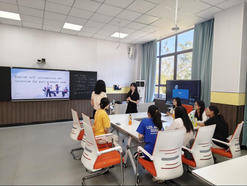 黄欣老师聚焦考研英语面试核心,着重阐释自我介绍与问答环节的关键价值,强调其对展现个人学术素养、专业潜力的重要作用。进入经验分享环节,老师结合自身丰富经历,深度讲解自我介绍构建逻辑。在模拟实践环节,同学们积极参与,有的进行英语自我介绍,字里行间满是对目标专业的热忱,展现扎实知识储备;有的模拟回答导师提问,围绕专业前沿问题、个人研究意向展开深入交流 。现场氛围热烈,同学们在演练中相互学习、发现不足,不断打磨英语面试技能。黄老师鼓励大家要敢于开口,在日常英语交流中培养语感,为考研复试英语环节的流利沟通筑牢基础,让同学们在轻松氛围中迈出英语能力提升的第一步。