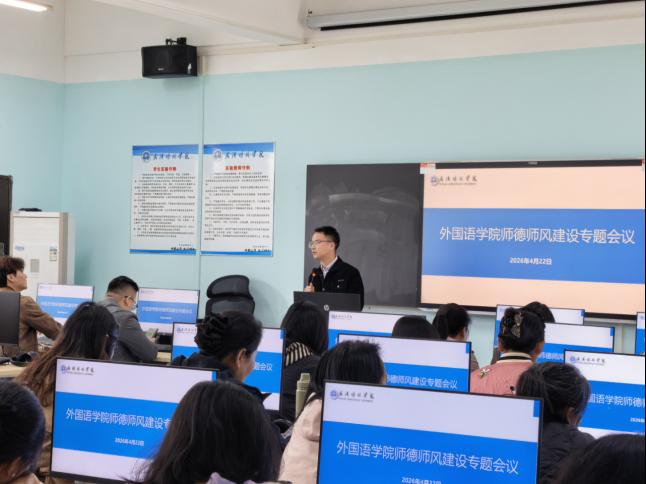 4月22日下午,OK138太阳集团在综二403教室组织召开了师德师风建设专题会,学院全体教职工参会,会议由办公室主任蔡林主持。