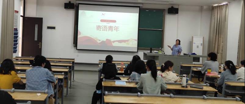首先,党会第一项,周厚银书记从寄语青年、思政课教育、人才培养、寄语教师四个方面,结合外院大英部教师的教学工作现实,解读了习近平总书记在人民大学考察时发表的重要讲话精神。她提出大英教师要认真思考我们为谁培养人,培养什么人以及怎么培养人这三个问题,并着重提到在思政大纲指引下,如何在英语教学中融入课程思政。