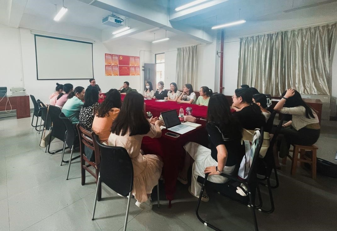 党总支副书记许潇丹深入大学英语部座谈调研。6月7日下午,许潇丹来到大学英语部,和教师们一起座谈交流。在调研过程中,每位教师都发表了自己的想法,并就提升英语学习兴趣、提高四级一次性通过率等方面给予了很多好的建议。在调研过程中,大家谈到了大学生英语学习目前需要关注的一些实际问题:如学生对英语学习的兴趣有待提高、不同专业学生的重视程度还不够;四级学习需要跨学院联合,通力营造英语四六级学习的学习氛围;英语四级与学位证的挂钩问题;通过各种形式,如英语角、英语协会的各类活动等加大英语学习氛围的营造;建议适量增加大学英语课时;有效扩大英语学科竞赛活动的参与面;增加有针对性的英语四级早自习、晚自习等。会上,教师们还就教学环境、人才培养、学科竞赛等方面提出了一些建议,也提出教学活动中面临的困难及产生的困惑,许潇丹也逐一给予回复,并形成调研清单。