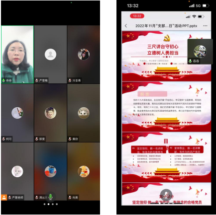主题党日活动由支部书记易静同志主持,并就”三尺讲台守初心,立德树人勇担当”为题展开学习,从“坚定信仰,做一名讲政治、有信念的合格党员”、“爱岗敬业,做一名讲奉献、有作为的共产党员”两个方面讲解,用党的创新理论武装头脑,推动全党更加自觉地为实现新时代党的历史使命不懈奋斗。现在,党的二十大之后,我们仍然要开展“不忘初心、牢记使命”主题教育,就是要用党的光荣历史和革命传统涵养党性,用习近平新时代中国特色社会主义思想武装全党。最后,易书记对党员老师的学习形式和学习要求进一步明确,布置了后期相关的学习和工作任务。