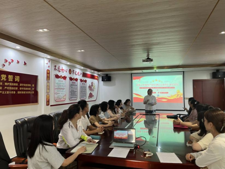 活动伊始,党支部书记易静老师带领大家重温了入党誓词,并向各位党员们介绍了7-8月“支部主题党日”活动,主要包括五大部分:一是学习习近平总书记在宁夏考察时发表的重要讲话精神;二是学习习近平总书记在全国科技大会、国家科学技术奖励大会、两院院士大会上的讲话精神;三是学习习近平总书记在中共中央政治局第十五次集体学习时的重要讲话;四是学习《中国共产党纪律处分条例》;五是学习党的二十届三中全会精神。