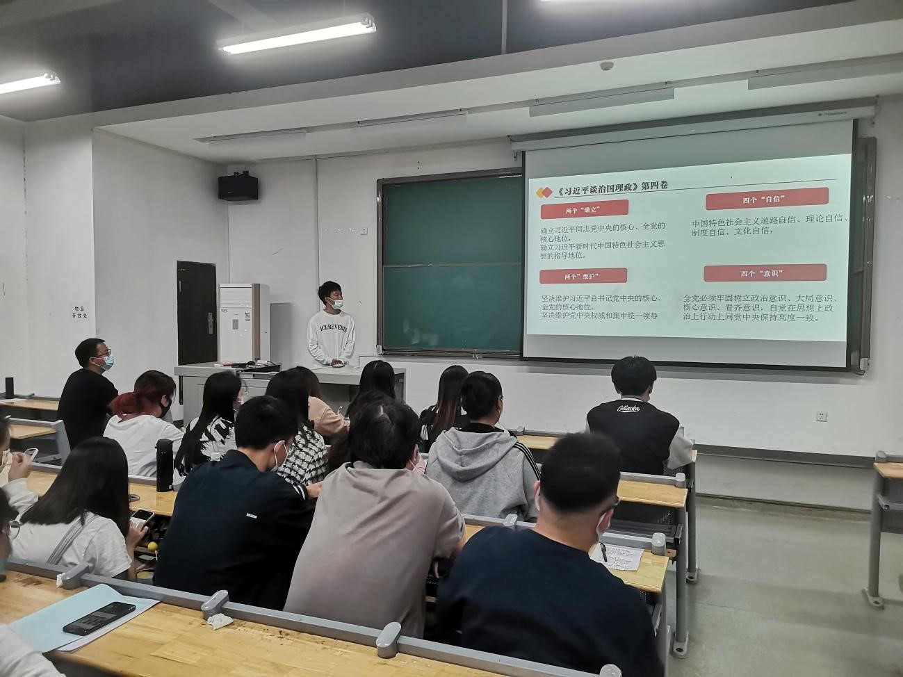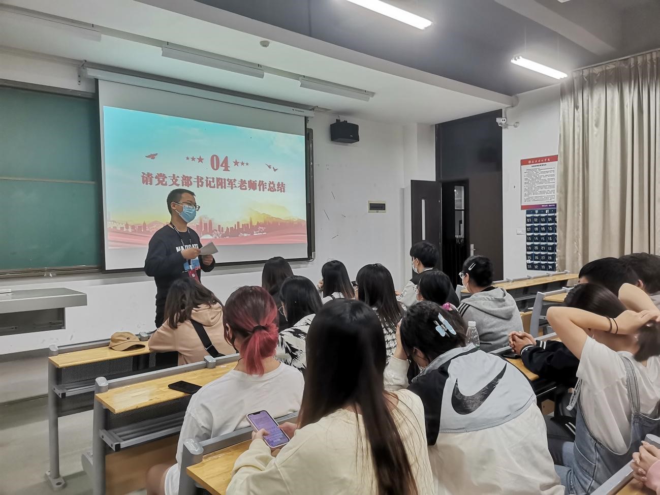 活动结尾,阳军老师进行了总结。他说到“习近平总书记在湖北武汉考察时期发表的重要讲话,对我们青年大学生来说,是再次打了一针强心剂,让我们深刻认识到社会经济发展与科技创新的辩证关系,以及科技创新、人才培养对催生新技术、新产业的重要作用。我们理应围绕国家发展方向,用青春担当科技自立自强使命。另外,阳老师也提到《习近平谈治国理政》第四卷是一本全面系统反映习近平新时代中国特色社会主义思想开辟新境界、实现新飞跃的权威著作,支部全体党员非常有必要学习,要通读、细读、精度、反复读,深入学习贯彻习近平新时代中国特色社会主义思想,捍卫“两个确立”、做到“两个维护”,在新时代新征程上团结奋斗、勇毅前行,以统一思想和实际行动迎接党的二十大胜利召开。