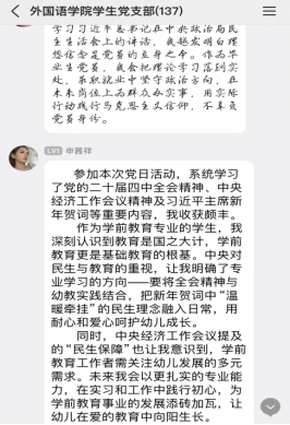 随后,大家集体研学了近期召开的中央经济工作会议精神。重点围绕会议提出的“坚持内需主导、创新驱动、改革攻坚、对外开放”等八大重点任务进行了学习。支部成员纷纷表示,这些部署为明年乃至更长时期的经济工作指明了方向,作为青年学子要关注国情,提升专业能力,为未来发展积蓄力量。