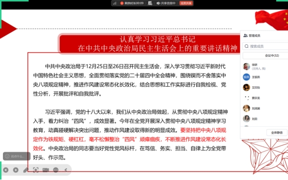 会议还组织学习了中共中央政治局民主生活会及12月25日会议精神。通过学习,支部成员深刻领会到党中央持续推进全面从严治党、加强作风建设的坚定决心,以及为“十五五”发展提供坚强政治保障的明确要求。大家表示要不断强化纪律意识,锤炼党性修养。